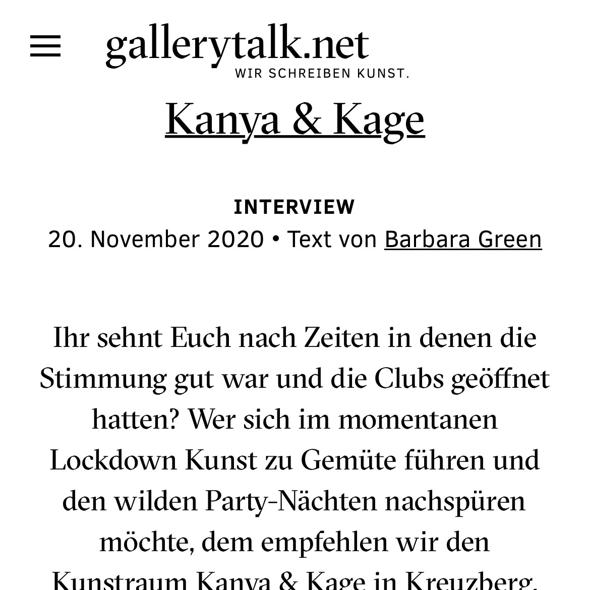 Interview mit Jan Kage und André Kanya bei Gallerytalk.net
